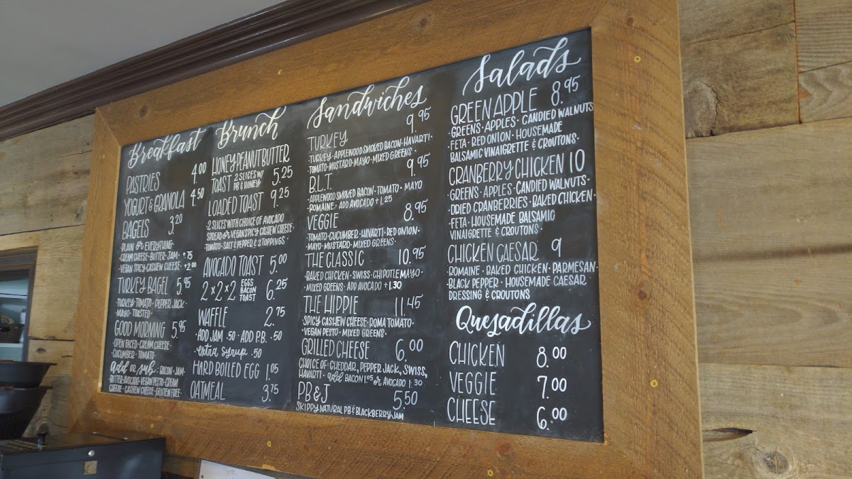 The menu covers a range of items that support a variety of customer needs, from quick grab-and-go options to more relaxed cafe-style dining.
