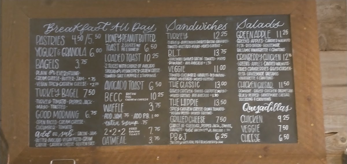 Additional Offerings: Customers can also find whole bean coffee for purchase, salads such as the Caesar salad, and various pastries including blueberry scones and sweet turnovers. There is also an option for coffee to go, supporting quick service.
