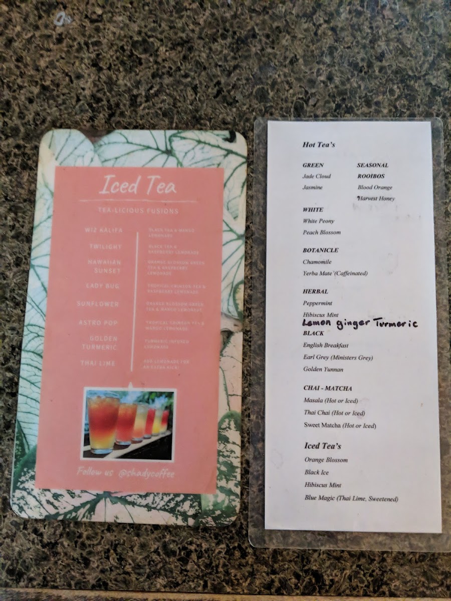 Shady Coffee & Tea Menu
